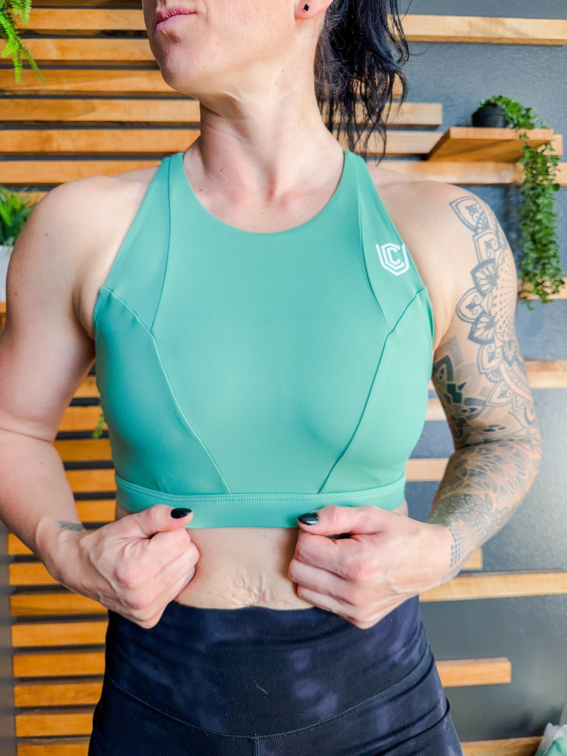 Designed for movement, not restriction. The Stay Dangerous Bra features a high-neck silhouette for full coverage paired with a lighter support fabric that feels breathable and comfortable all day. Perfect for lifting, mobility work, rest days, or wherever your strength shows up.